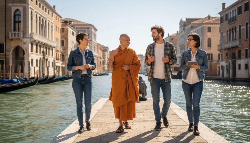 Tu je posebno zanimljivo njegovo iskustvo sa radionice u Veneciji pod nazivom “Towards a New Theory of Consciousness”. Okupili su se ljudi iz različitih polja, David Chalmers, Christoph Koch, Anil Seth, Carlo Rovelli, Hartmut Neven, predstavnici indijske filozofije, taoistički mislilac i, kako Swami kaže, “ja sam bio monah tamo”.